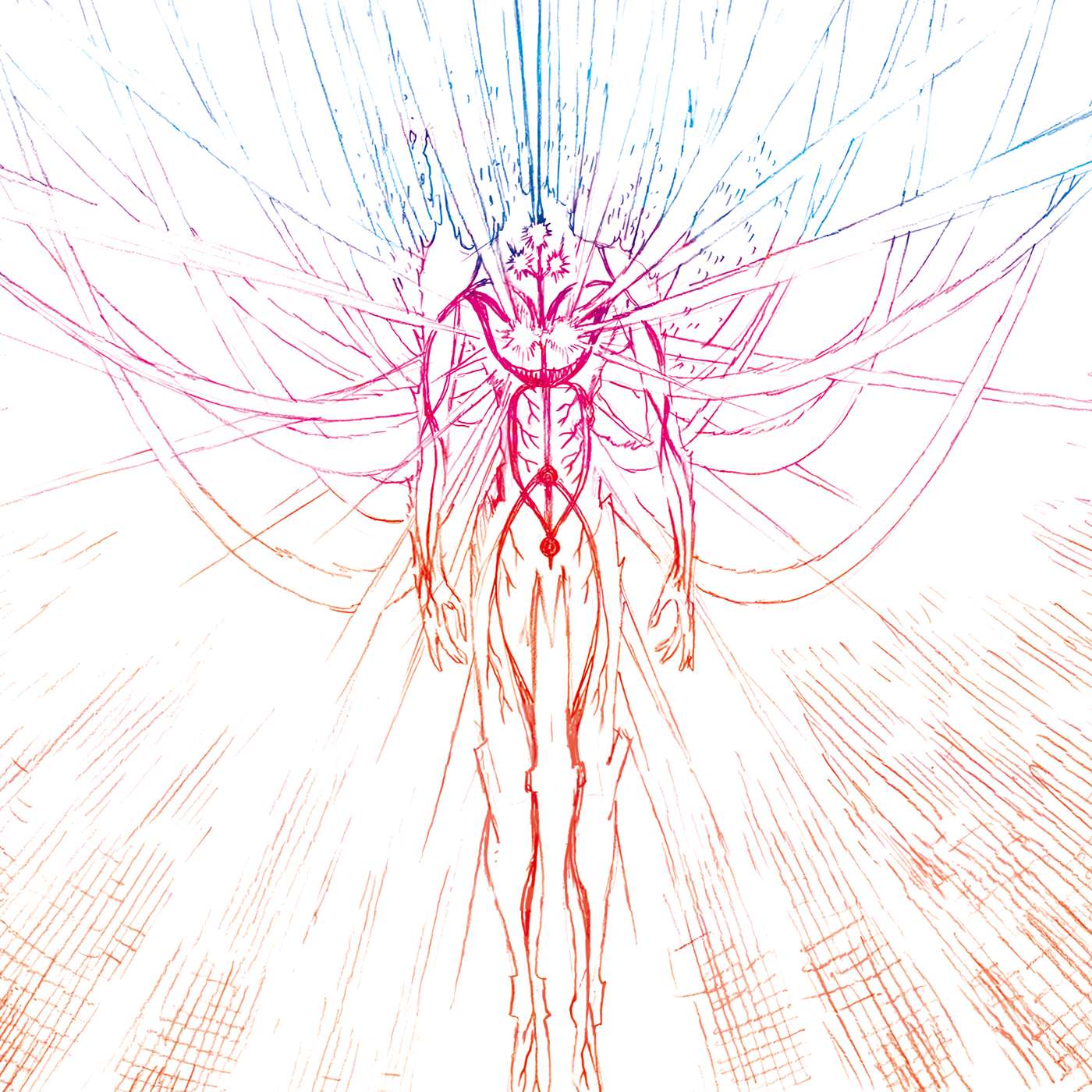 The artwork was created by Masashi Ichifuru (TGB design) and is a modified version of some concept art by Mahiro Maeda. It depicts phase 2 of the Evangelion Unit-01 pseudo-evolution. It's also called "The Radiant Giant" (光の巨人).