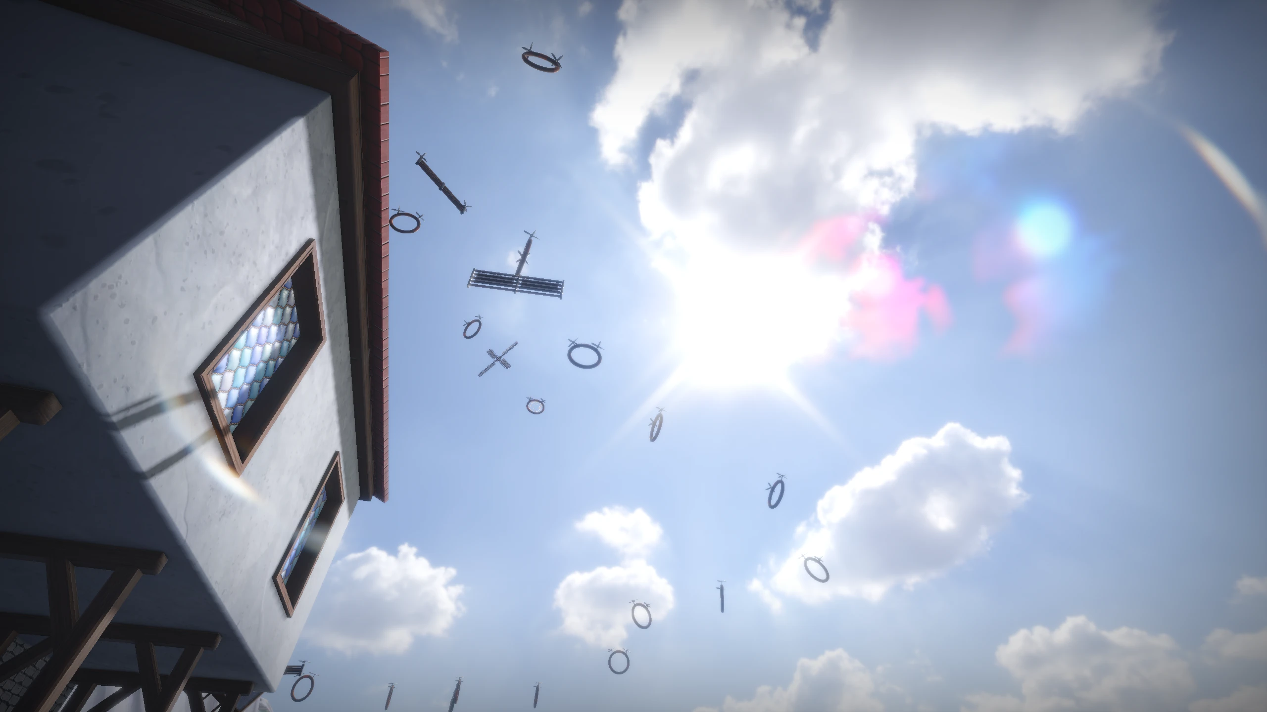Physically based bloom uses the dual-filter pyramid approach from the CoD: Advanced Warfare presentation. I had implemented this in my earlier deferred renderer and reused the approach here and later in City Lights. Lens flares and light streaks are layered on top using John Chapman's pseudo lens flare method with Kawase-style streaks. Tonemapping uses AgX, which handles saturated highlights more gracefully than ACES or Reinhard. All post-process passes run as compute shaders rather than via a full-screen triangle.